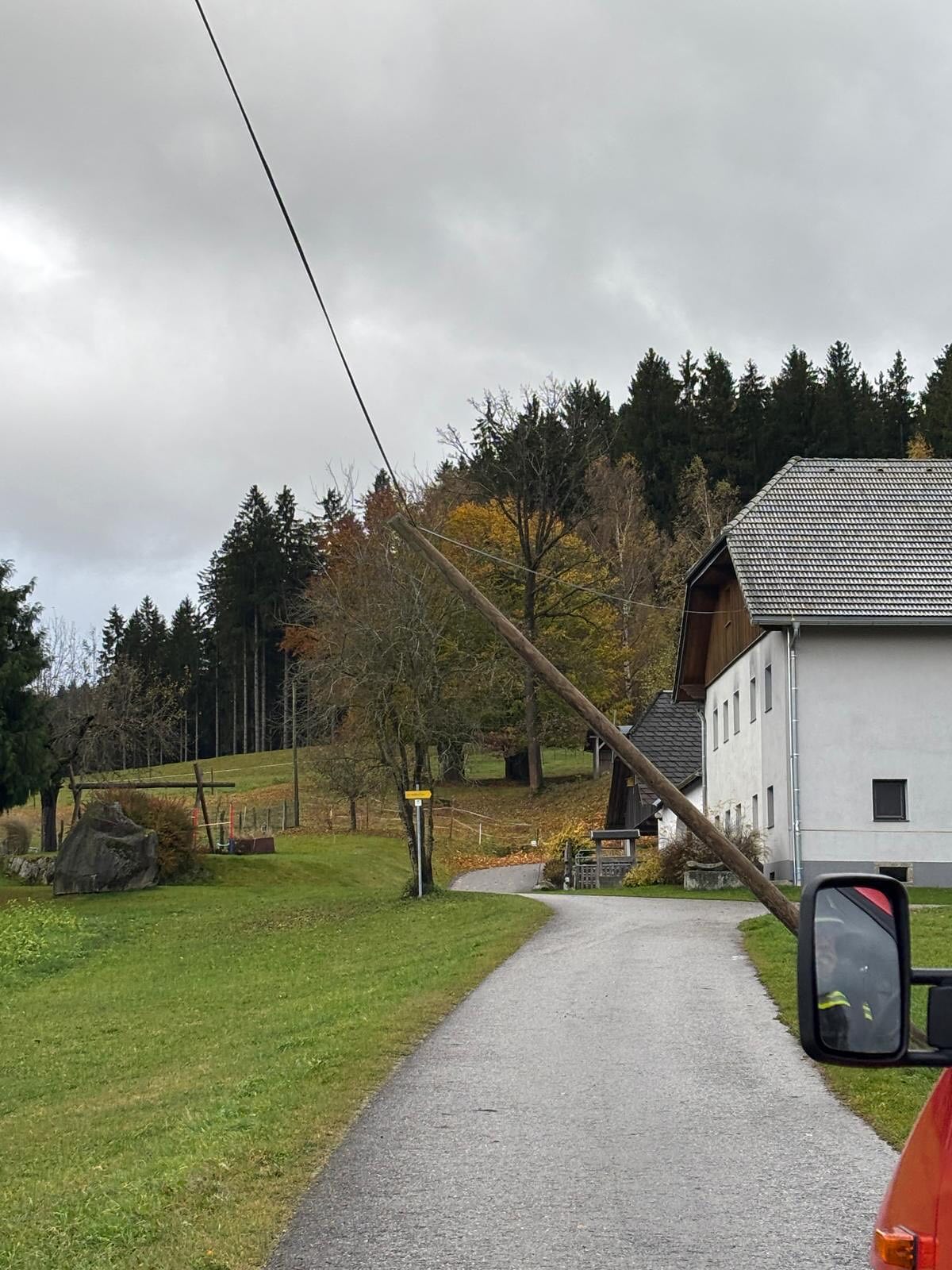 Heute Vormittag wurde unsere Feuerwehr telefonisch zu einem technischen Einsatz alarmiert. Ein Telefonmast wurde durch den Sturm umgerissen und ragte in die Fahrbahn.