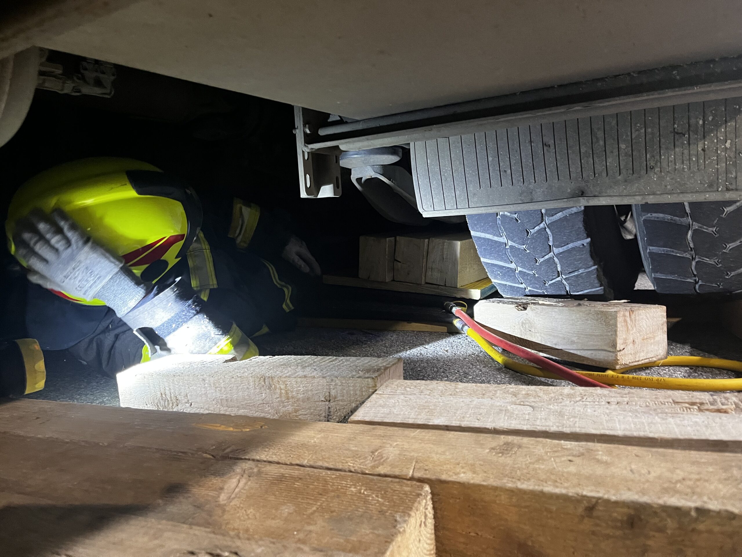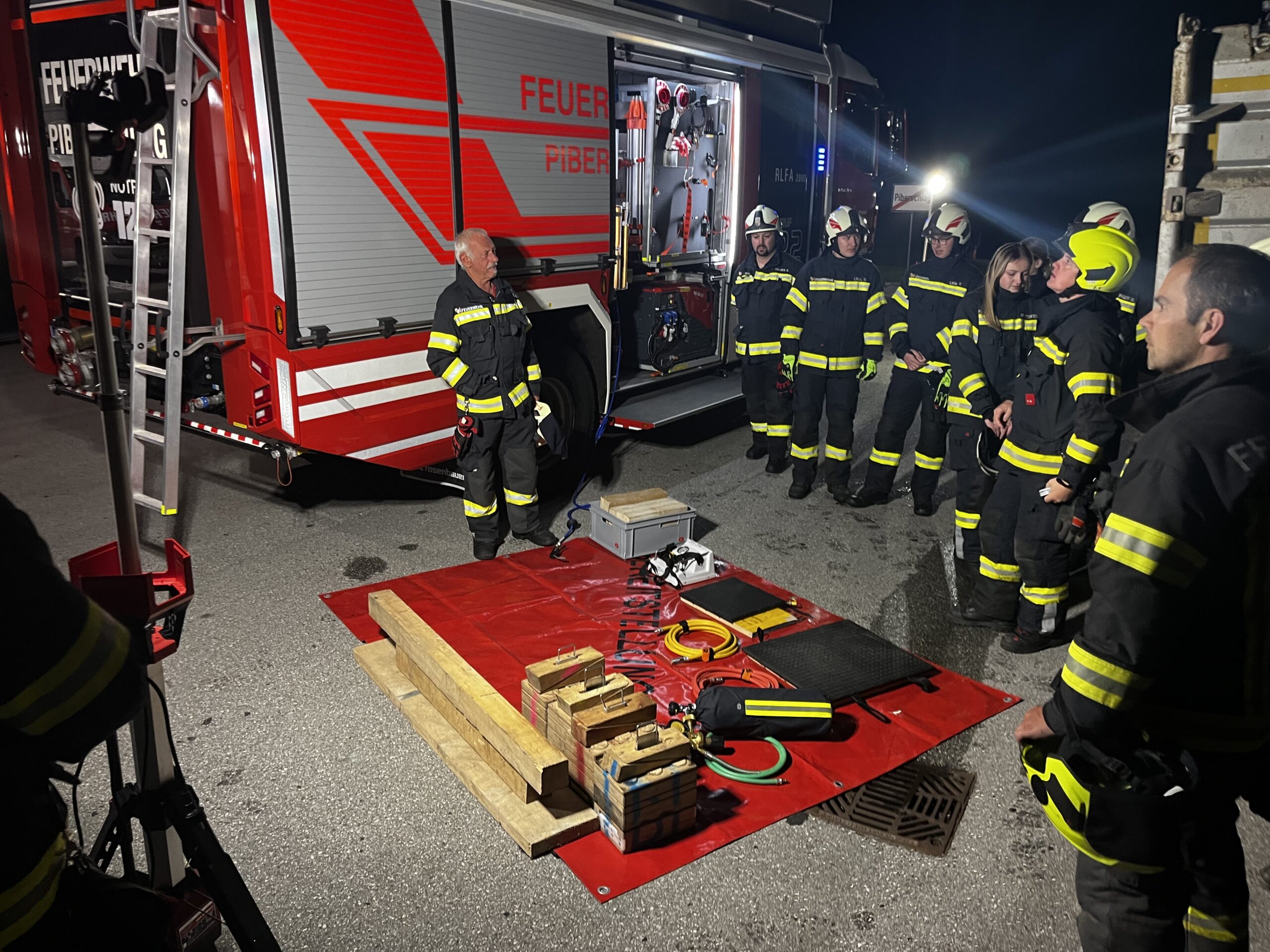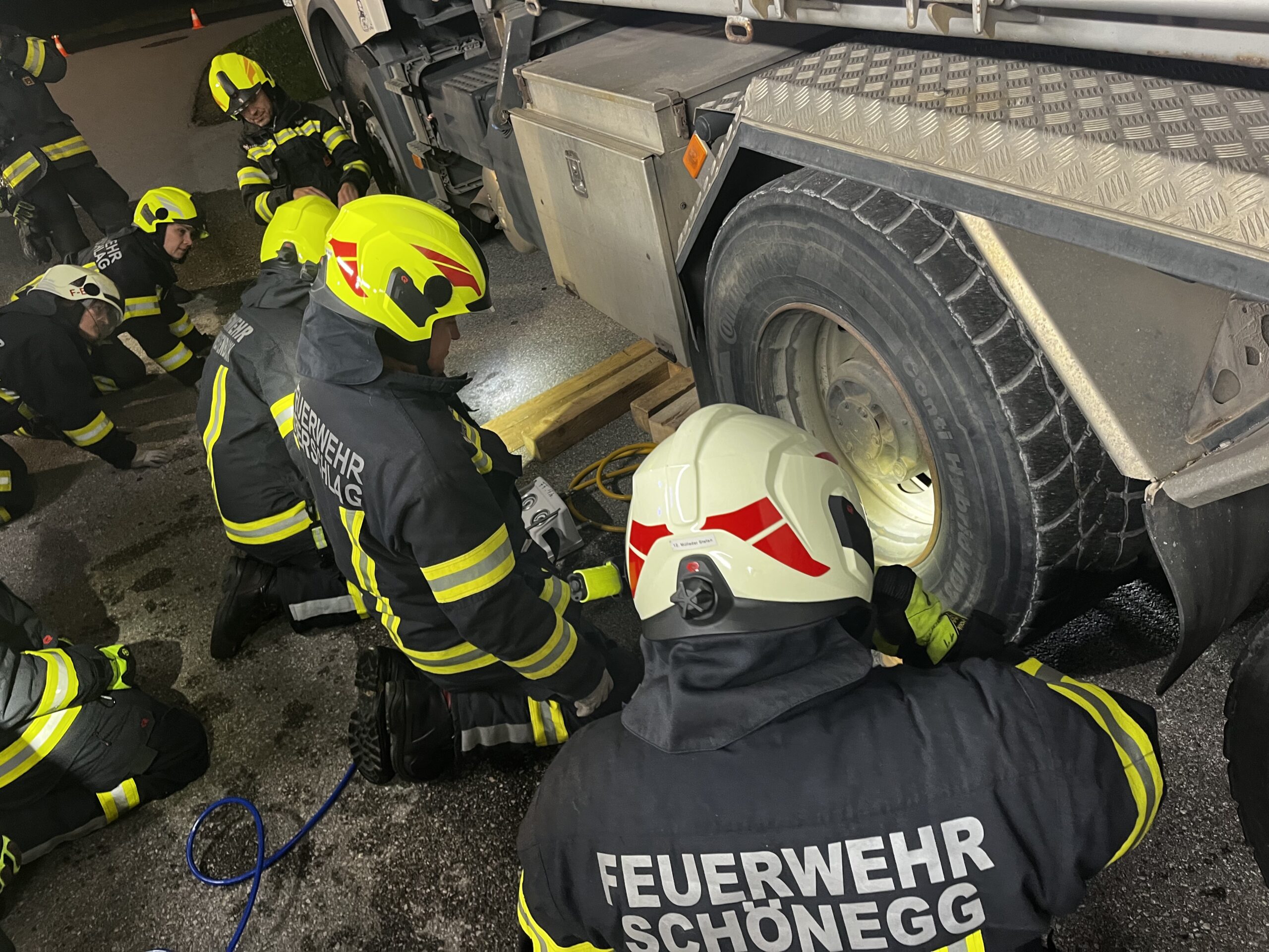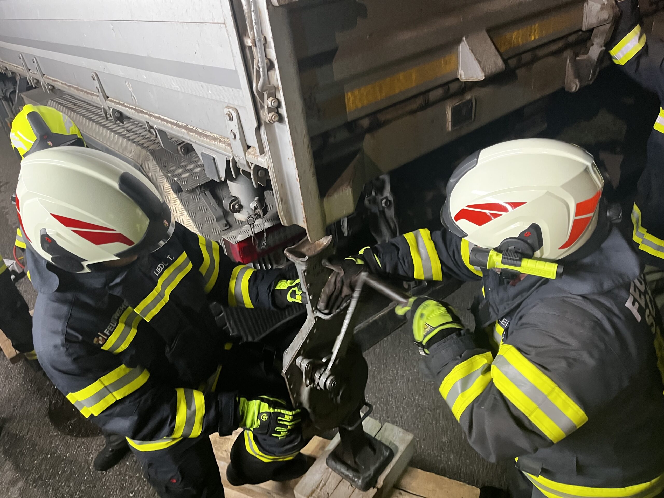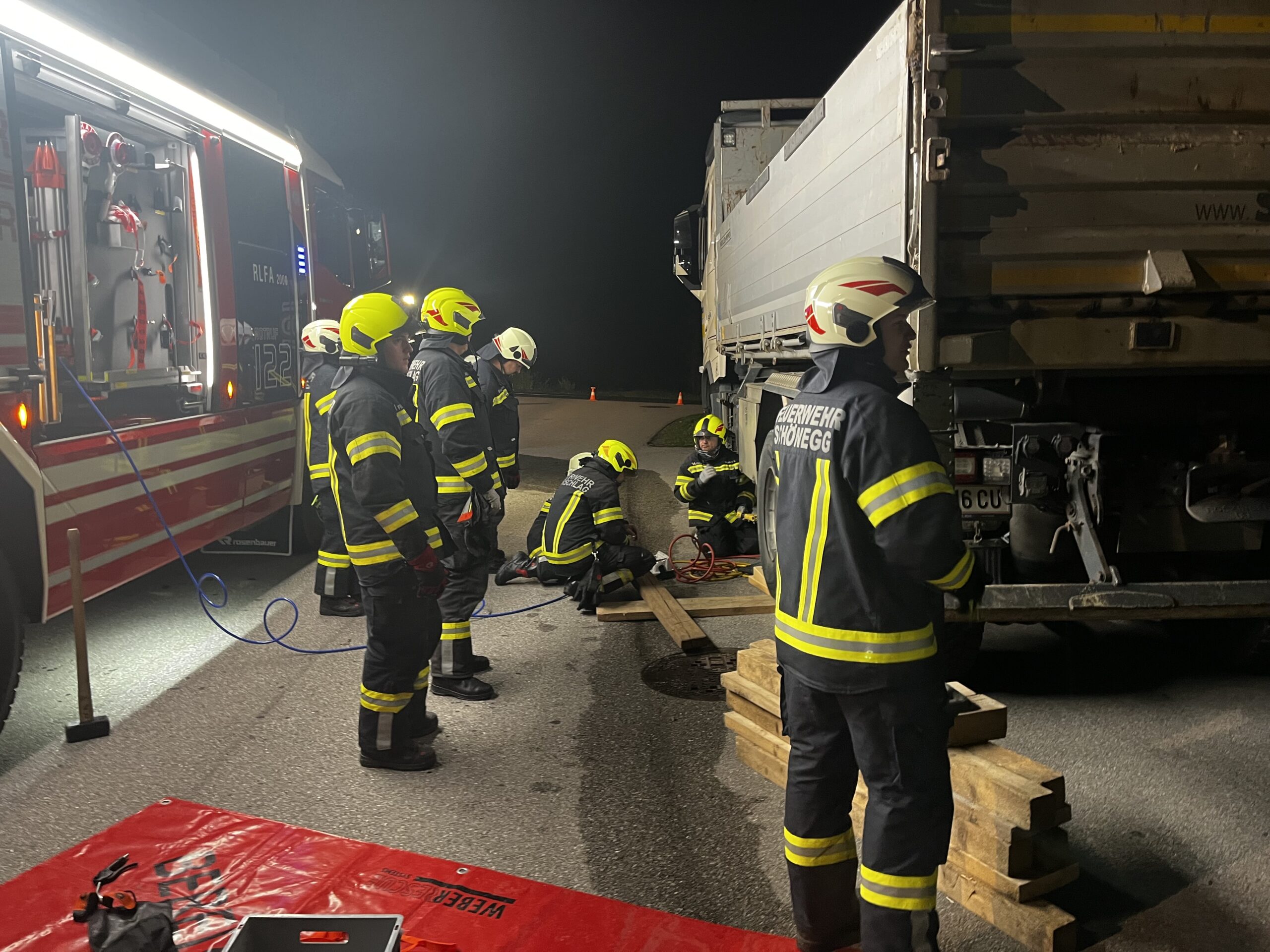 Bei unserer Monatsübung im Oktober drehte sich alles rund um das Thema Hebewerkzeuge. Gemeinsam mit den angehenden Truppführern der Feuerwehren Vorderweißenbach und Schönegg trainierten wir das sichere und präzise Anheben schwerer Lasten – in diesem Fall einen voll beladenen LKW mit ca. 26 Tonnen.